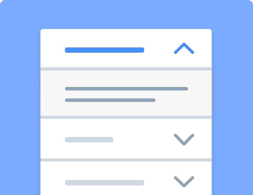 アコーディオンは、情報を整理・グループ化する方法を提供しながら、垂直方向のスペースを減らすために、コンテンツに折りたたみ可能なセクションを提供します。
