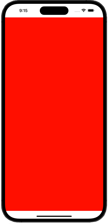 たとえば、以下は iPhone 14 Pro Max のスクリーンショットです。赤いセクションがセーフエリアで、白いセクションはアプリのコンテンツが覆われる場所です。